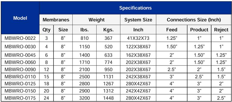 • MEDIUM BRACKISH REVERSE OSMOSIS SERIES (MBWRO)